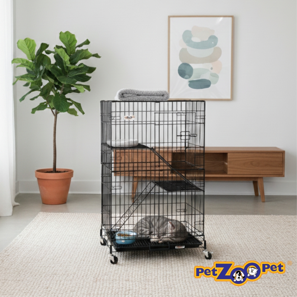 PetZooPet C344 two level cat cage has been produced from heavy gauge steel wire for stability and durability. Our products featured an injection plastic tray that can last for years and can be easily removed for cleaning.