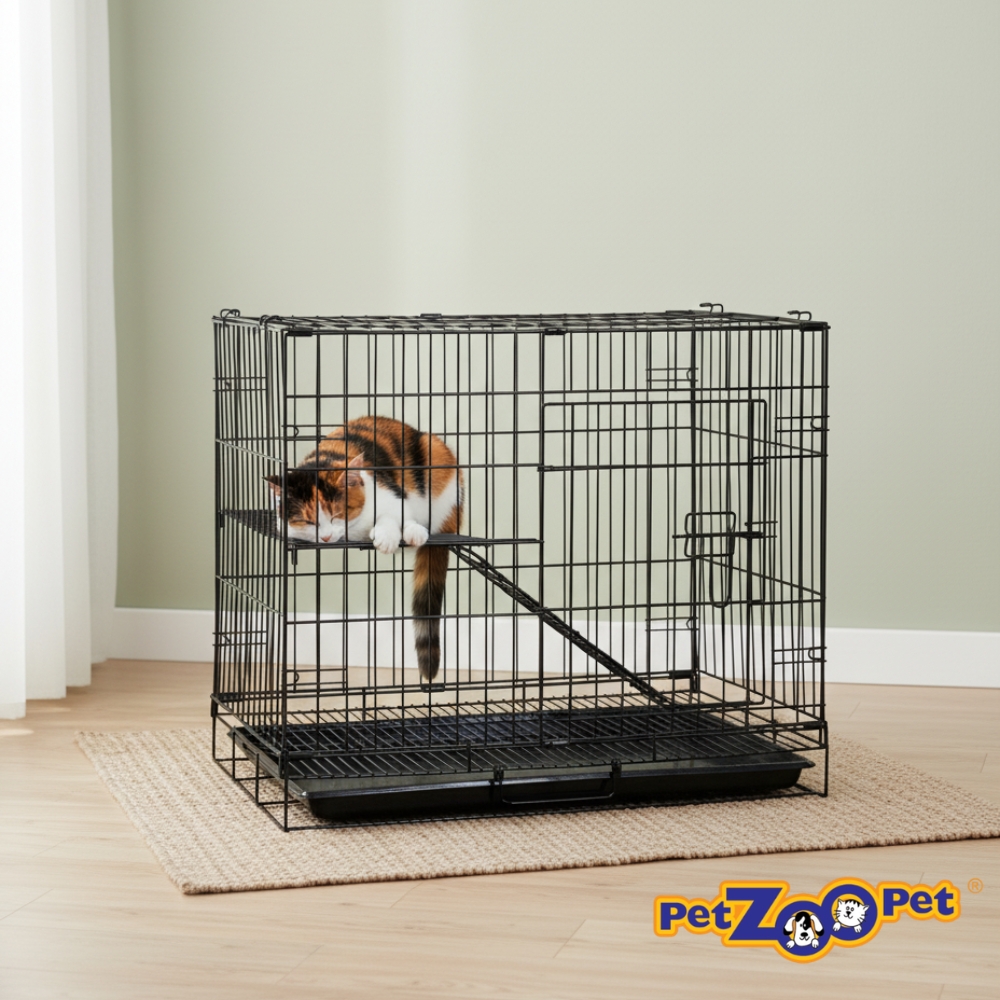 C345 Foldable Cat Cage features a non-toxic, epoxy powder-coated gloss black finish.