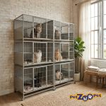 C370X PRO is our largest knock-down cat cage, built for boarding & breeding. It has various compartment and complete with, ladder, platform, wood finishing flooring and semi panels.